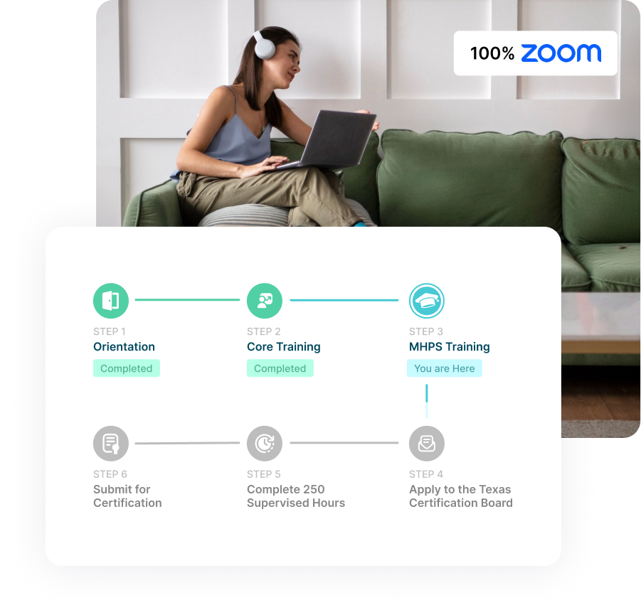 This is the 2nd training required by individuals seeking to obtain the Mental Health Peer Specialist certification. This 5-day training consists of 46 hours of instruction, including instructor-led lessons and self-study.