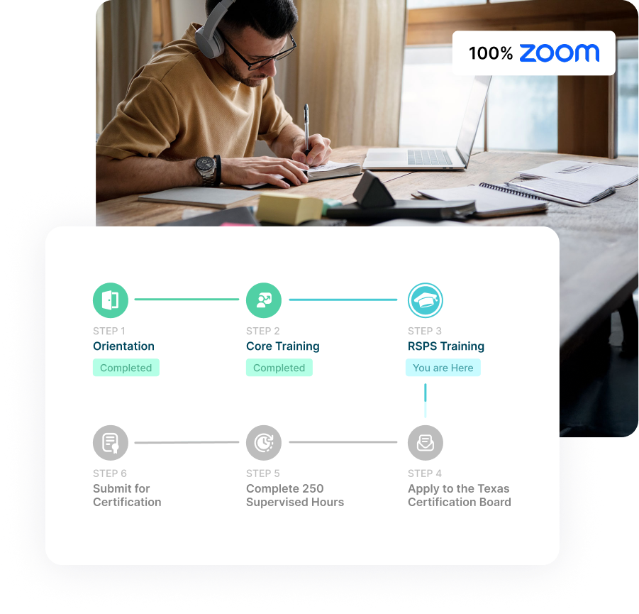 This is the 2nd training individuals need to obtain the Recovery Support Peer Specialist certification. This 5-day training consists of 46 hours of instruction, including instructor-led lessons and self-study.